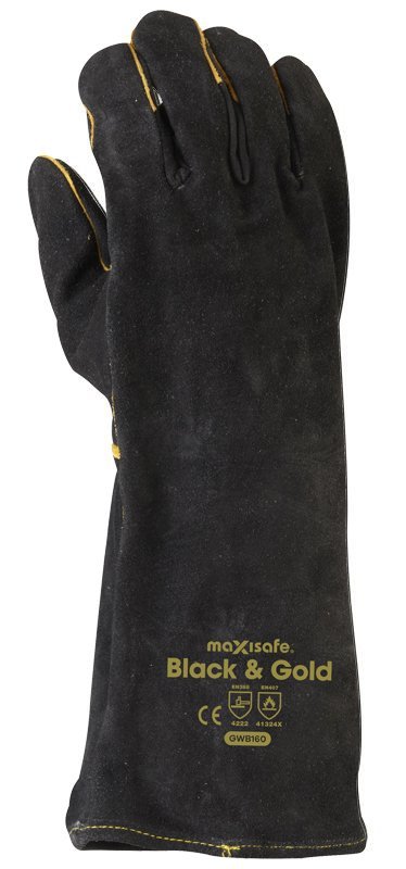 Maxisafe Black & Gold Welders Gauntlet – (12 Pair) GWB160