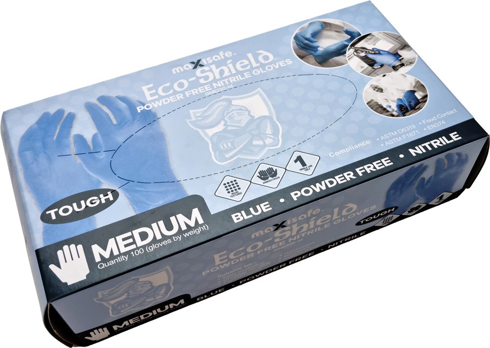 Maxisafe Eco-Shield Blue Nitrile Disposable Gloves – Powder Free | GNE220