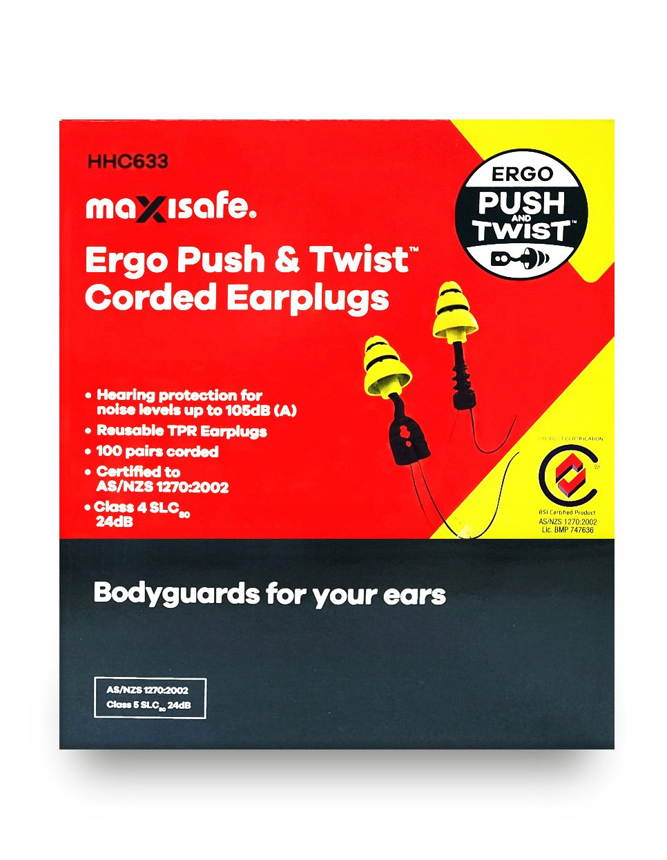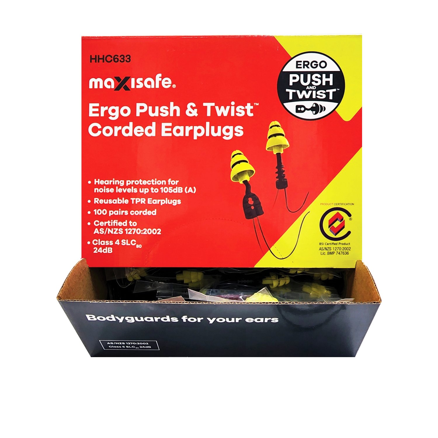 Maxisafe Ergo Push & Twist Corded Earplugs – Class 4 (Box of 100 Pairs) – HHC633
