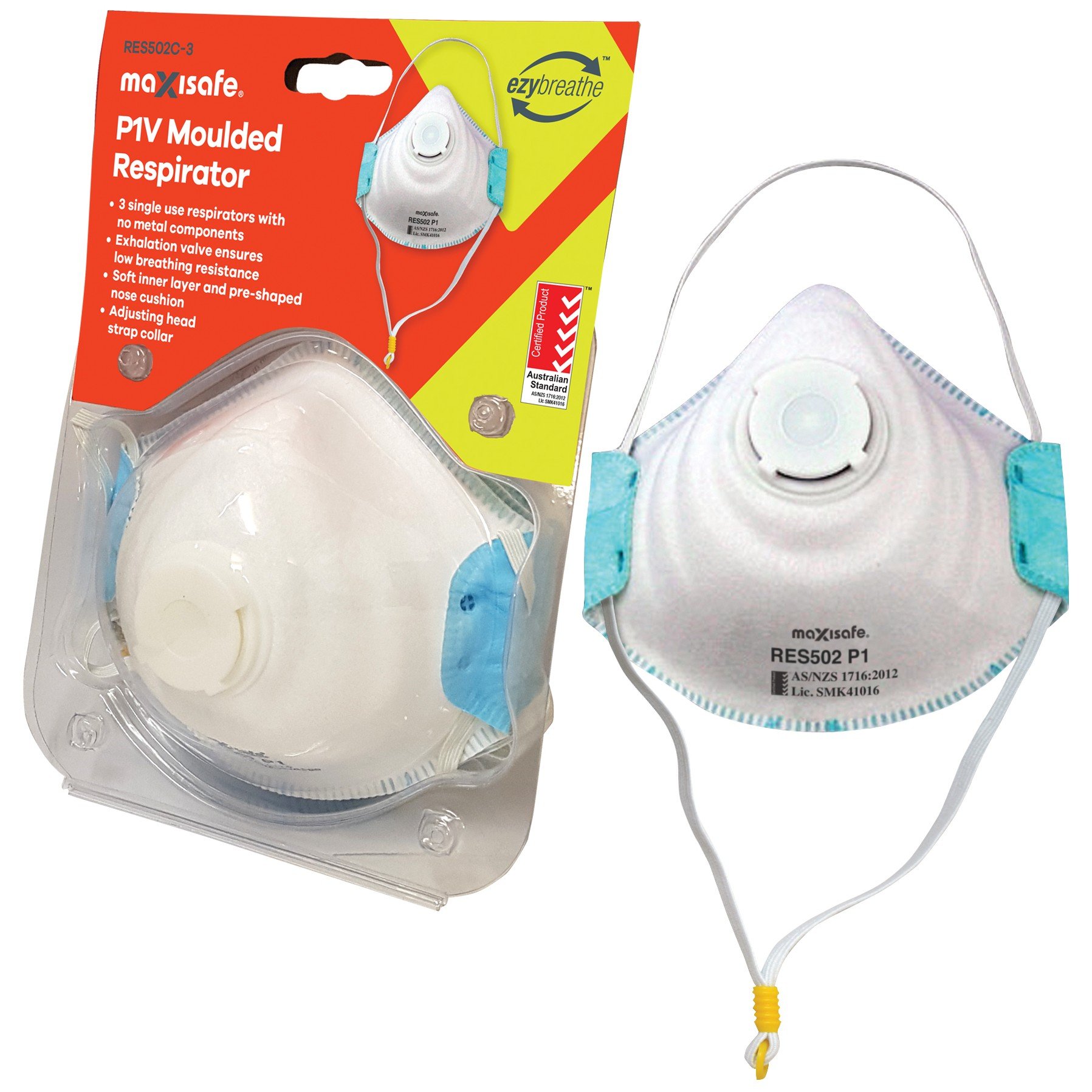 Maxisafe P1 Moulded Respirator with Valve – Card of 3 (RES502C-3)