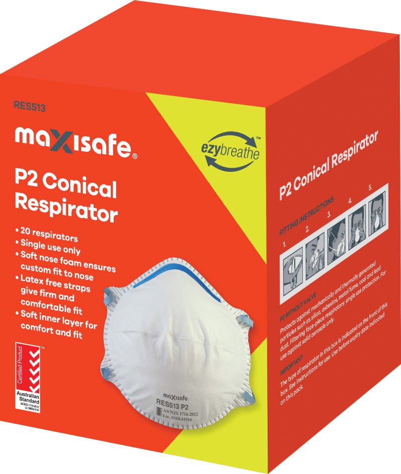 Maxisafe P2 Conical Respirator Dust Mask – Box of 20 (RES513)